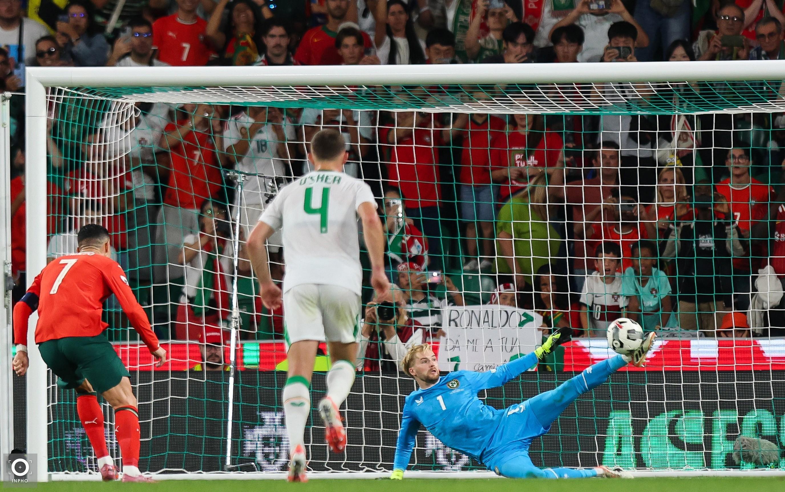 C罗2024年对阵爱尔兰踢任意球时激励自己,可惜球击中了门柱
