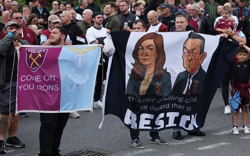 邮报:西汉姆对阵水晶宫赛前,大批球迷场外抗议西汉姆老板