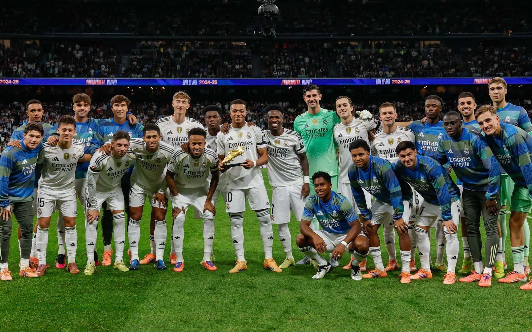 卢宁亏麻了姆巴佩赛前手捧欧洲金靴奖和皇马全队合影
