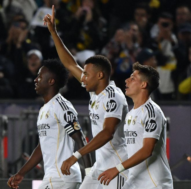 用了长达10个小时的飞行,皇马才来到了远征的哈萨克斯坦客场;虽然上轮马德里德比惨败,但这场比赛并没有让银河战舰遇到太多麻烦。上半场姆巴佩便点球破门打开了胜利之门;在对手实力不在同一平均线以及体能下降后,姆巴佩第52分钟单刀赴会扩大优势;第73分钟又接到居莱尔回敲后拔脚怒射完成了帽子戏法。替补出场的罗德里戈助攻卡马文加锦上添花,迪亚斯补时阶段再进一球,皇马5:0大获全胜。