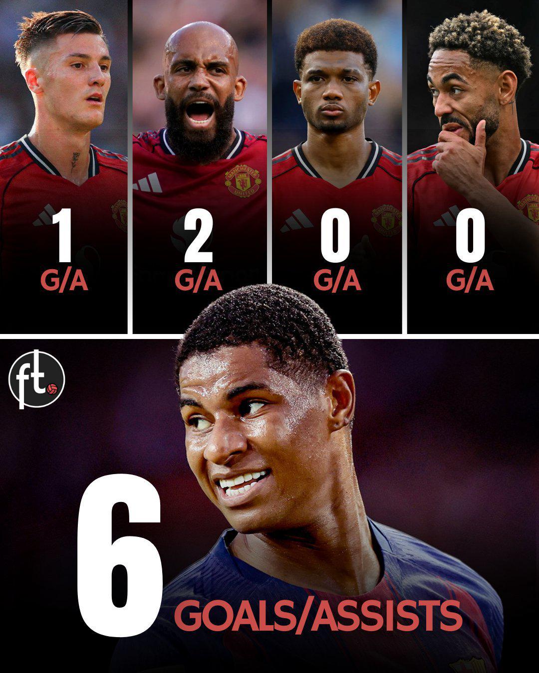 曼联锋线本赛季参与进球数仅3粒,拉什福德参与进球数就有6粒