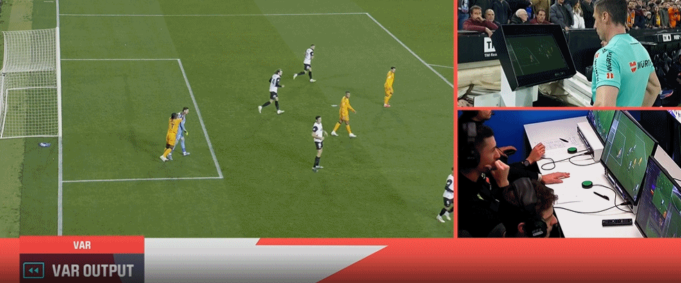 比如赫伊森在阿诺埃塔球场被罚下的事件中,吉尔·曼萨诺直接向他出示了红牌,尽管这名皇马球员并非最后一名防守球员,而且这起事件也并非明显的进球行为,但VAR并没有介入。