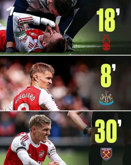 本轮与西汉姆联的比赛,厄德高仅踢了30分钟便因伤退场。赛后,阿森纳官宣厄德高左膝内侧副韧带受伤,回归时间未定。过去一年,厄德高可谓是“伤痕累累”,本赛季尤甚。统计数据显示:厄德高成为英超史上首位连续三场联赛首发都在半场前因伤被换下的球员。