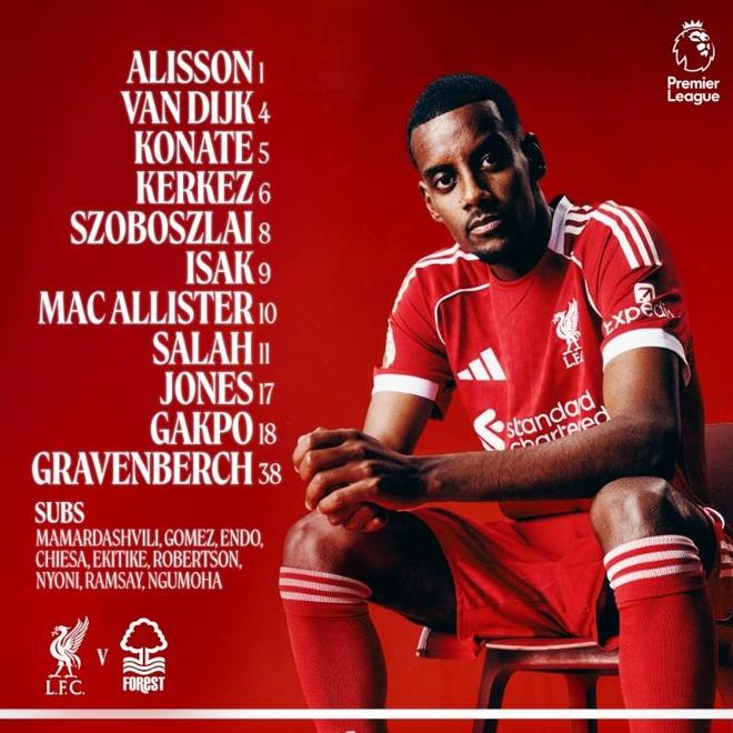 北京时间11月22日23:00,英超第12轮,利物浦主场对阵诺丁汉森林。赛前首发公布。