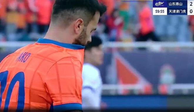 第88分钟,基莱斯利用个人能力连续扣过多名泰山球员之后射门得手,津门虎扳回一球,1-2!
