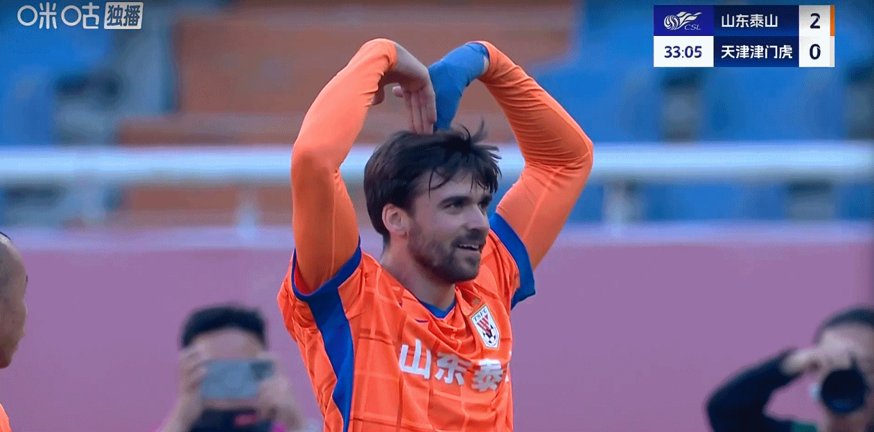 第32分钟,谢文能右路底线附近传门前助攻,泽卡头球再下一城,泰山2-0领先!