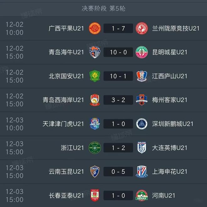 申花U21无缘联赛冠军,本场比赛大爆发,第40分钟,石炳鑫破门,2分钟后,韩嘉文再下一城。第80分钟,庞开元打进第三球。第87分钟,王汉龙锦上添花,第90分钟,庞开元梅开二度,最终上海申花5-0大胜云南玉昆。